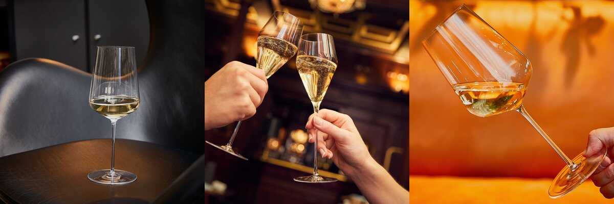 kristallglas och vanligt glas. Och valet är kristallklart: Kristallglas är det självklara valet. Det kan tillverkas tunnare samtidigt som det är starkare och mer elastiskt. Titta bara på Zalto Coupe Crystal Clear och Zalto Coupe Effect – kanske det tunnaste glaset som någonsin tillverkats! Ytterligare en fördel med kristallglas är att det har en grövre yta än vanligt glas, vilket skapar mer turbulens i vinet. Detta frigör mer flyktiga doftmolekyler i glaset som ytterligare lyfter doft och smak.